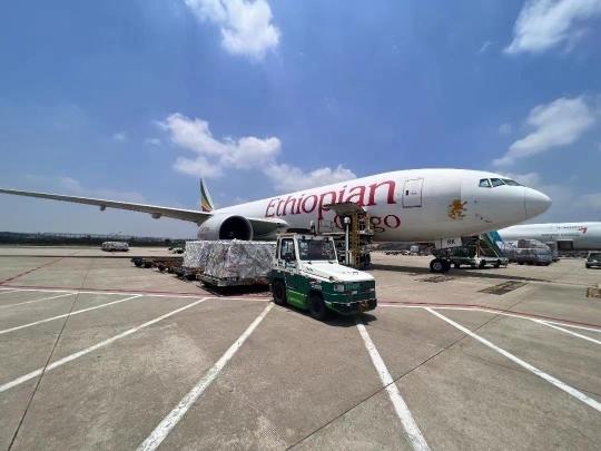 5月14日,一架由智利起飞经停吉布提的载有94.8吨冰鲜三文鱼的ET3756航班抵达白云机场,广州白云国际机场地勤服务有限公司(以下简称“白云地勤”)开启保障加速度,仅用时53分钟完成从装卸机到运输至物流货站,实现抢“鲜”运输。