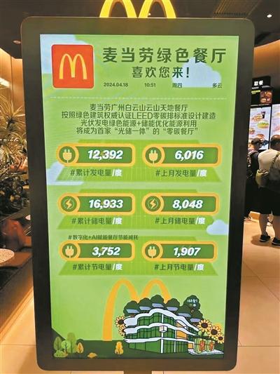 实际上,这个绿色模式,除了“光伏发电+电储能”,数字化节能工具“智能能耗管家”为这家餐厅实现零碳目标提供了精准的判断。有关负责人介绍,店内启用AI辅助的“智能能耗管家”,它通过物联网连接7大系统用能设备包括空调系统、新风系统、变频排烟系统等,管理团队在手机移动端通过实时数据看板进行追踪和管理,借助智能开关机、能耗异常管理和用能分析等功能,发掘餐厅能耗优化的机会点,从而助力餐厅节能减耗。该餐厅中更有80%的用能设备获得能源之星(Energy Star)认证,整体降低用电能耗需求。减少能源浪费,是零碳行动举措之一,麦当劳中国正通过“数字化+智能化”,来推进餐厅的节能减耗。