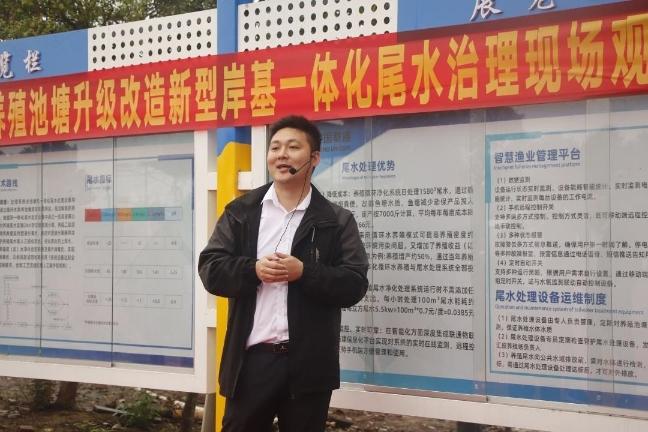 在养殖池塘,只见鱼塘底部的水哗哗流淌,岸上的尾水处理系统信息化平台实时显示着水质的改善状况。原本的尾水,经过岸基一体化尾水净化处理设备,变成了清水,重新流入鱼塘,供养殖使用。整套设备占地面积4.5平方米,不需人工值守,可以远程操控。相比传统的挖掘池塘10%的面积作尾水处理池,大大降低了人力和租金成本。