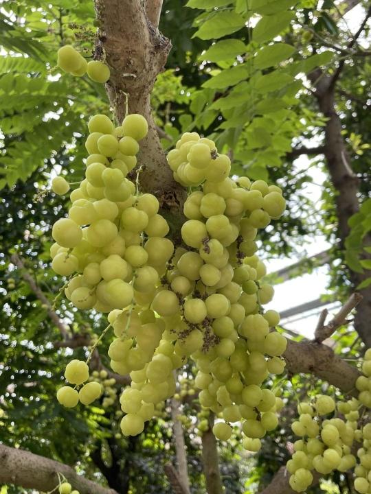 近日,在华南国家植物园奇异植物室和能源路边,有一种硕果累累的植物引来众多游客的驻足观赏和拍照,这些果子远点看像一串串淡黄绿色的葡萄缀满在枝上,走近看又像一个个晶莹剔透的小南瓜,十分可爱,它们就是从泰国引进的西印度醋栗。