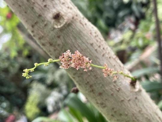据华南国家植物园方面介绍,西印度醋栗原产于马达加斯加岛、印度、菲律宾、越南等地,作为热带雨林植物群落中下层树种,是典型的“老茎生花”和“老茎结果”。在茎干上开花结果,方便昆虫传粉和避免狂风暴雨的袭击,有利于繁衍后代。此外,粗壮的树干也能承受果实的重压,不容易折断。科研人员告诉记者,这是植物的一种生存智慧,是植物在长期的演化过程中,逐渐适应环境而形成的一种特有的生物现象。