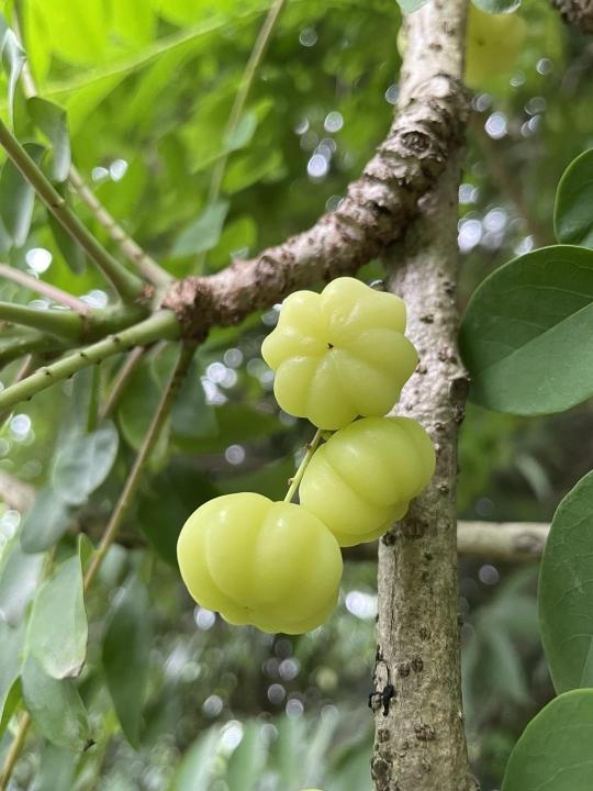 记者了解到,西印度醋栗不仅果实引人注目,树形也非常美观。老茎生花结果,花果兼具观赏性,是较有特色的园林绿化树种,可用于植物园、公园、庭院等种植。据资料介绍,在泰国民间西印度醋栗被作为药用植物种植,果实可以食用,可用来制造果酱、果汁、蜜饯等,有美白和抗老化功效;也可作为果树栽培,具有广阔的开发应用前景。