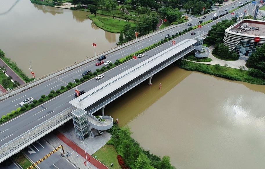 近日,由中铁广州局集团承建的创享湾人行桥及周边功能完善工程取得新进展,5座人行桥已全部建成并通行。
