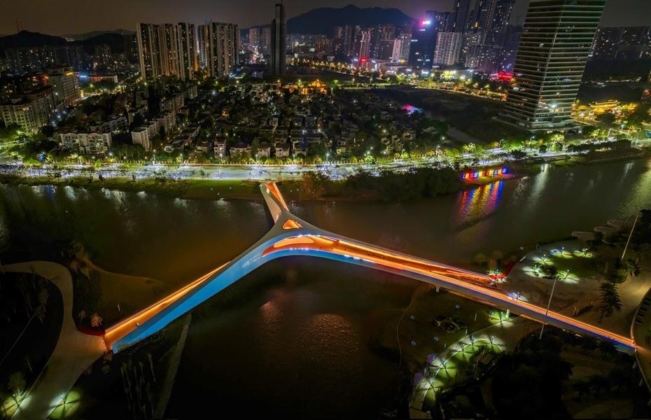 5座人行桥的开通,联通了蕉门河中心区各区块,将青创、交流、法律服务、科创合作等平台汇聚一体,延续了南沙新区“城市客厅”(蕉门河景观带)的空间活力,有力提升蕉门河两岸滨河景观和城市品位,方便周边居民出行和游憩。同时,也为南沙打造承载港澳合作的集聚区,更好地激发汇聚创新人才活力,优化区域营商环境创造了有利条件。
