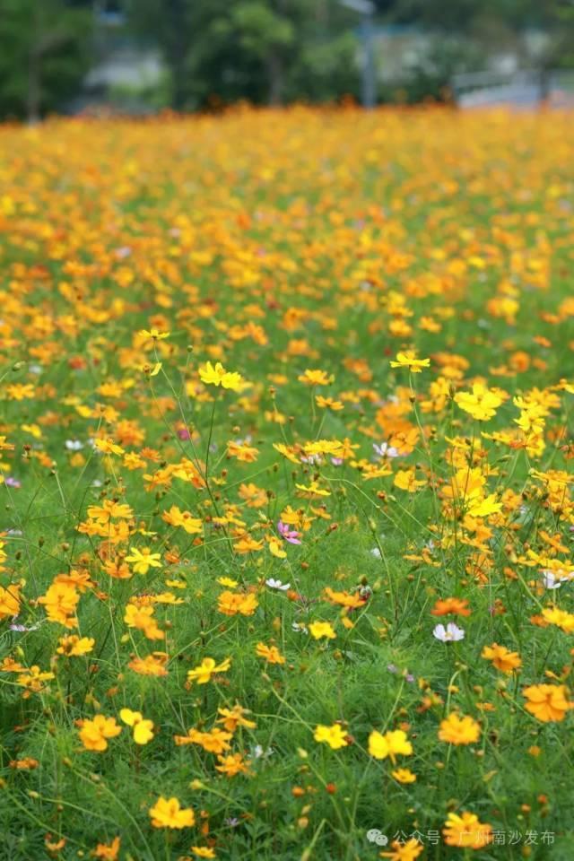 近日,南沙区内不少公园的黄花波斯菊迎来盛放期,置身其中,仿如走进一幅油画。