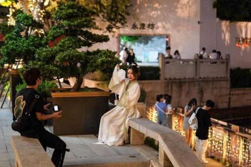 夜晚的永庆坊,不时能遇到穿汉服拍照的游客。
