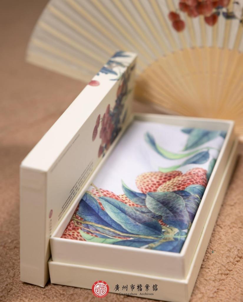 广州市档案馆与广州大学美术与设计学院张立巍教授指导的大学生创新训练项目合作将“红荔珍禽图”融入档案文创,设计出“红荔珍禽折扇”与“红荔珍禽丝巾”。将艺术档案作品融入实用的生活用品,对档案文化深入挖掘与创意转化,将艺术之美与岭南文化之美相融合,在生活中感受档案文化的魅力。