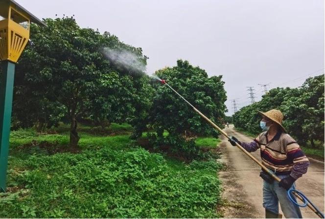 在广州郭仔农业有限公司大望山果场,负责人郭伪荣正指挥工人们进行保果管理。他表示,尽管今年是荔枝小年,也要做好果树管理工作,保障仙进奉荔枝品质。