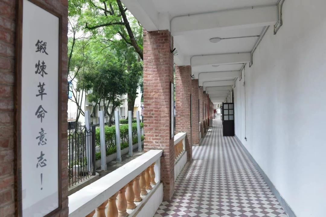 俱乐部是黄埔军校里面规模最大的单体建筑,建于1926年,共两层高,是当时黄埔军校师生举行集会、演出、节日庆典的场所。走进军校俱乐部,一楼四周回廊“修旧如旧”,过道柱子上新加装了富有时代气息的壁灯,天花板上悬挂着复古吊灯和风扇,大厅中间一排排复古桌椅整齐安放着……修缮后的黄埔军校俱乐部让人沉浸式感受黄埔军校师生当年的文化生活。