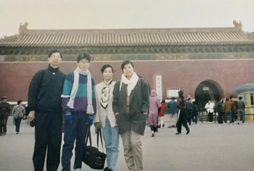丘杰仁(左一)和同事们去北京参加电脑培训(图片由作者本人提供)。