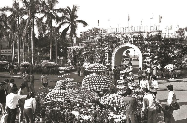 70多年来,“迎春花会”“中秋灯会”“羊城菊会”是文化公园坚持不辍举办的“一年三个重头戏”,是深入老广记忆的传统文化盛事。1953年,公园首次举办菊会,“满园尽带黄金甲”的场景让广州人如痴如醉。1965年,菊会上还出现了一个有趣的场面:几个外国友人站在一盆大立菊旁反复观察、来回徘徊。他们疑惑“自己国家也有菊花,为何中国的菊花开得这么好?”工作人员翻查资料后找到了答案:中国是菊花原产地,三千多年前《礼记》就记载,中华大地有一种“正色唯黄”的菊花,后来菊花传至日本、欧洲。