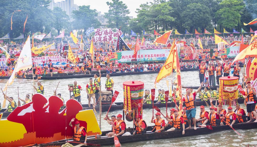 此次荔湾区在花地河上复办东漖龙船景,将龙船盛景与乡村振兴、城市发展同频共举,在传承传统文化同时,加入新时代元素,展示荔湾新活力新风貌。