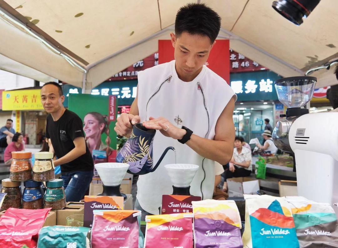 参与者不仅可以盲品、亲自动手制作咖啡,还能观赏到专业咖啡师进行冲煮拉花表演。不少居民、群众还与咖啡师交流,了解咖啡种植、加工、烘焙等知识。一些工作人员更是穿上当地的民族服装,让摊位充满异域风情。