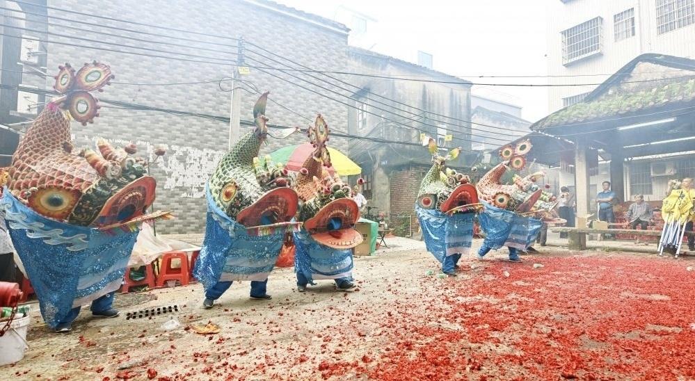 农历五月十三是关帝诞。6月18日,广州市番禺区大龙街沙涌村举办关帝诞鳌鱼舞民间艺术巡游活动。