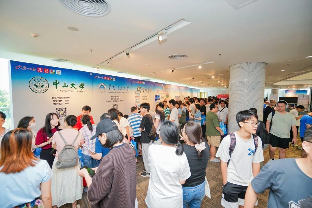 除了人气旺,许多学校老师对广报中心举办展会的场地和服务也赞不绝口。“地铁口配置接驳巴士很贴心,分时段控制人流量也很到位,交通方便,环境非常好!在这里吹着空调,舒服多了!”香港科技大学(广州)本科招生广州市负责人吴老师说。