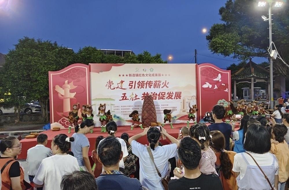 6月20日晚,由广州市番禺区新造镇公共服务办、新造镇社工服务站、秀发村联合主办的“党建引领传薪火 五社共治促发展”新造镇红色文化成果展在秀发村举行,活动吸引了600余名社区居民踊跃参与。