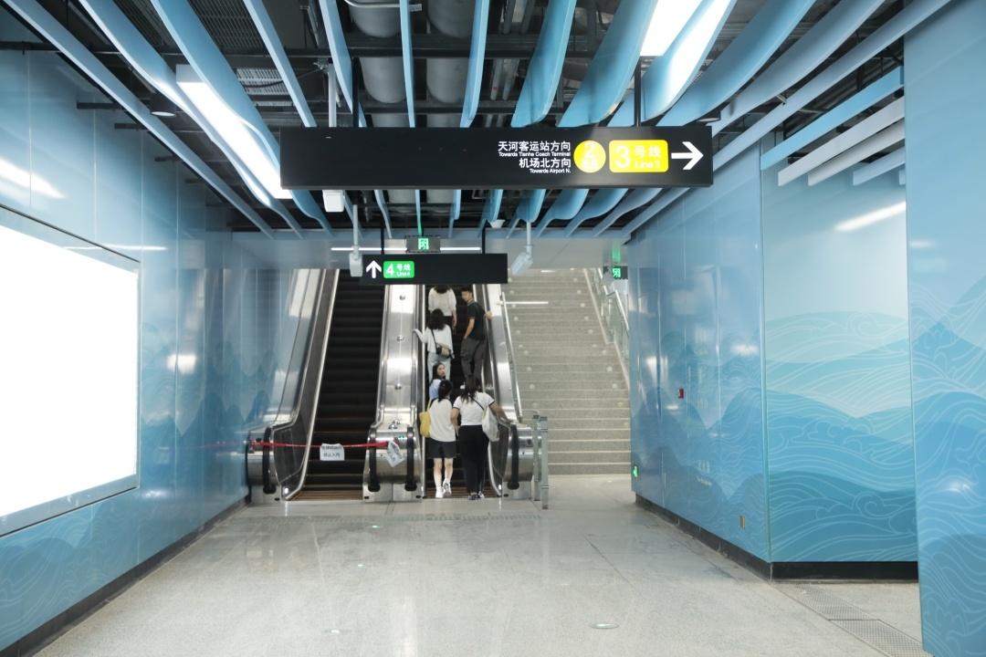 “线路强化了广州地铁‘一站一色’整体色彩印象,在装修设计上呼应线路沿途自然环境,对空间诸多设计要素进行整合提升,分别采用不同的艺术构思手法,再结合多种装饰材料、色彩、质感等,使各车站具有各自的特色。”广州地铁建设公司第一建管部副总监严志权介绍。