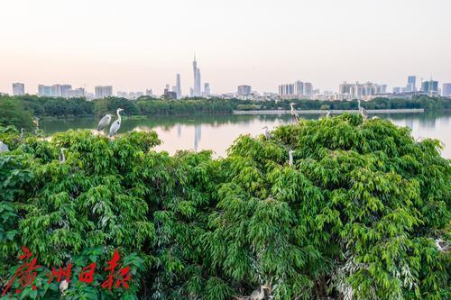 成群水鸟在海珠湿地栖息