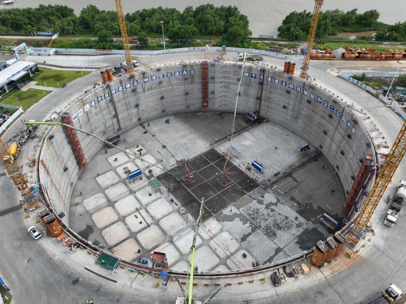 为提升施工质量,一方面,项目建设团队搭建数字化管理平台,自主研发了自动计算加冰水系统,根据实时环境温度、原材温度监测数据,自动控制拌合站加冰和冰水用量,将每一方混凝土入模温度严格控制在28℃以下;另一方面,创新研发大体积混凝土智能温控系统,通过预埋系列测温元器件,自动无线感应温度变化,自动控制循环冷却水的流速和温度,实现了大体积混凝土温度智能反馈控制。