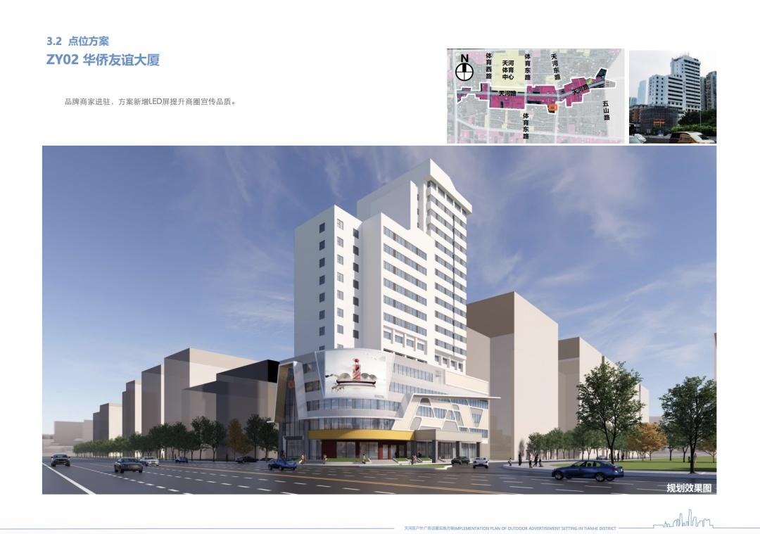 华侨友谊大厦位于天河东路65号,根据品牌商家进驻,方案新增LED屏提升商圈宣传品质。