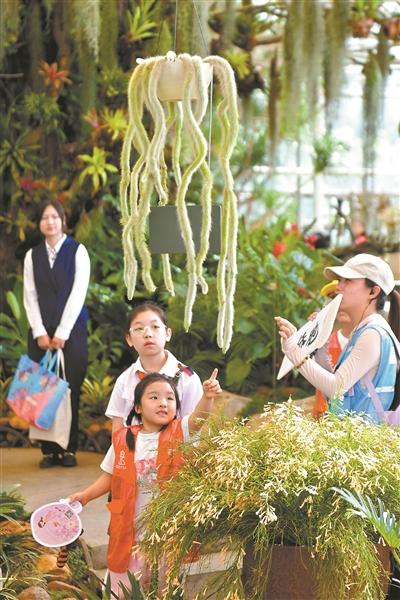 孩子们在珍稀特色植物展开展研学