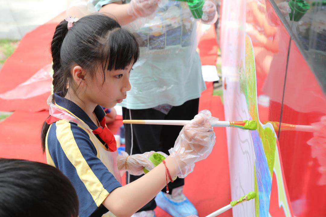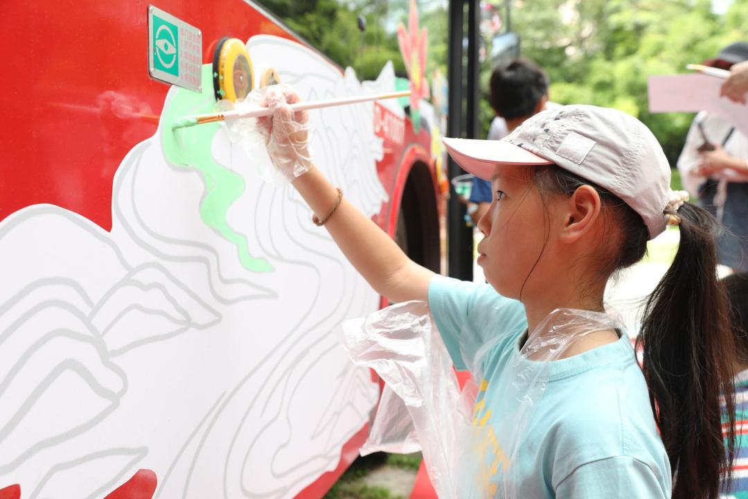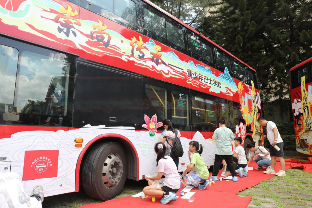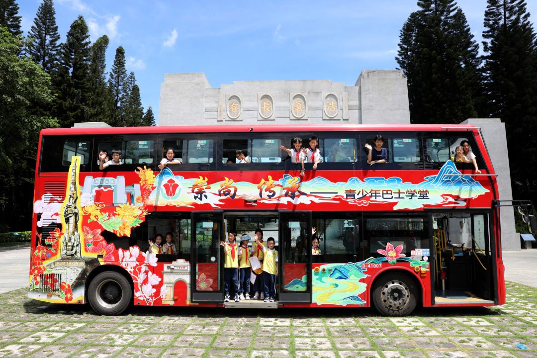 7月13日,一场特别的手绘“崇尚·传承”红色主题巴士学堂活动在国家级烈士纪念设施——广州市黄花岗公园举行。80余名中小学生用手中的画笔将广州市红色纪念设施、广州地标式建筑物绘在双层巴士上,解锁沉浸式接受爱国主义教育新体验。