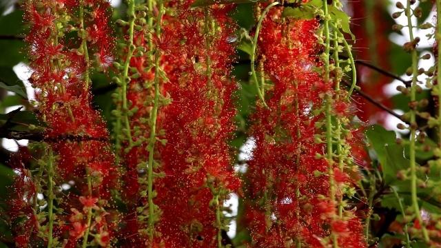 据了解,红花玉蕊花序上的花蕾从上往下,依次绽放,常多朵花同时开放,单朵花暮开朝落,花期短暂。