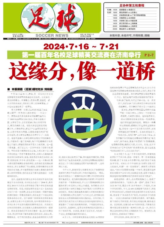 就是这样的一群人,在共同的理解之上,促成了这段美妙的缘分。“这缘分,像一道桥”,连接了来自全国18个省,覆盖小学、初中和高中三个组别,共24个学校的球队。今天,近600名满脸稚气的孩子,和他们背后的校长们,将陆续来到这座同样历史悠久的名城,老舍笔下“济南的冬天”很美,但这些孩子们的到来,一定会让济南的夏天变得生机盎然、朝气蓬勃。接下来的七天时间里,我们将认真地比赛,畅快地交流。《足球》报,在漫长的44年的时间里,不断地关注着中国足球发展的每一根神经末梢,这一次,我们只想让这些喜欢在草皮上奔跑的孩子们,更加明白,他们的快乐,到底来自于哪里?