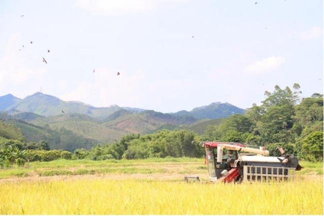中新镇早稻进入成熟阶段,濠迳村农户收割水稻。