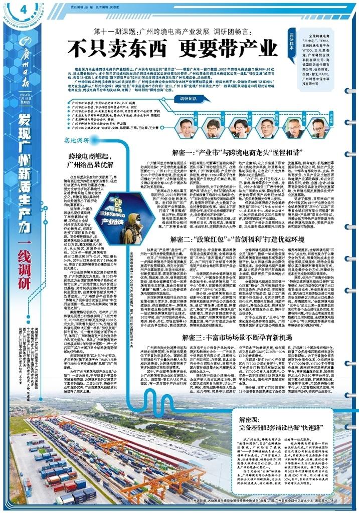 广州缘何能成为跨境电商龙头的共同选择?广州跨境电商企业如何结合本地产业资源组团发展?跨境电商平台、货运物流如何“环环相扣”助力企业品牌从广州走向全球?政策“红包”未来应往哪个方向派?近日,广州日报“发现广州新质生产力”一线调研团队带着这些问题走访跨境电商企业、跨境电商平台和相关机构,开展了一场特别的“探路出海”之旅。