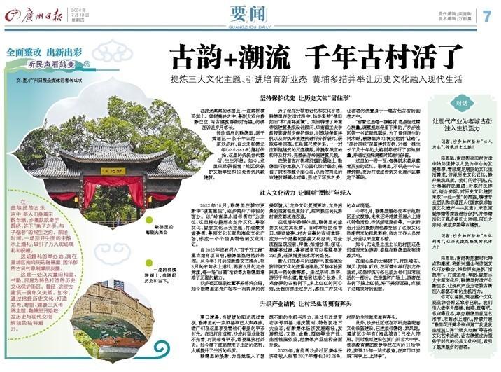 陆思聪:南岗街在旧村改造中始终坚持以人民为中心的发展思想,着眼满足居民的文化生活需求,传承历史文化记忆,提升景观品质。我们问计于民,充分尊重村民意愿,听取村民建议,结合实际,对历史文化建筑采取“一处一策”的措施,聘请专业团队和非遗匠人(国家级非物质文化遗产——灰塑),采取原址修缮等措施进行保护,并修缮活化了鹿步梁氏大宗祠、何氏大宗祠、俊成家塾等古建筑。