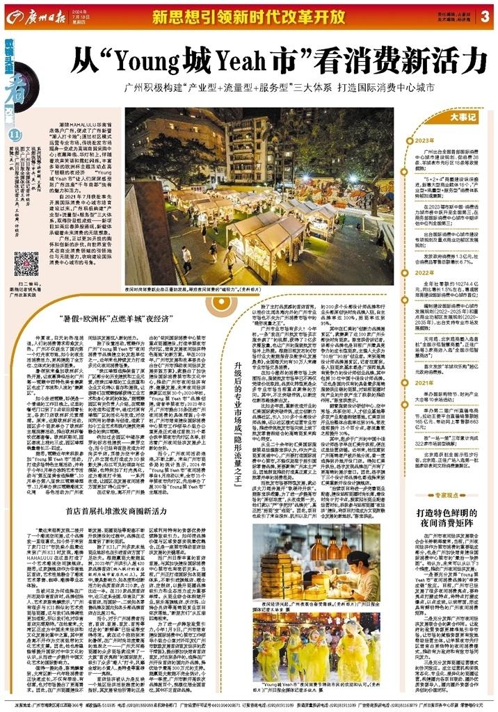 一是要充分发挥“Young城Yeah市”夜间消费品牌的“串珠成链”效应。目前,广州市已经发展了很多夜间消费亮点,要将亮点打磨成特点,将特点打磨成爆点,以点成线,以线带面,形成具有鲜明特色的广州夜间消费矩阵。