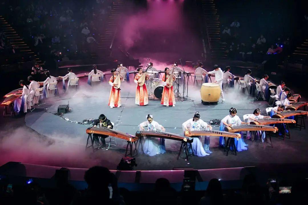 在主持人林琳的介绍下,粤港澳大湾区青少年音乐周“未来音乐家”星耀盛典拉开序幕,广州小海燕弹拨乐团的《盛世国乐》为晚会带来了精彩的开场表演。