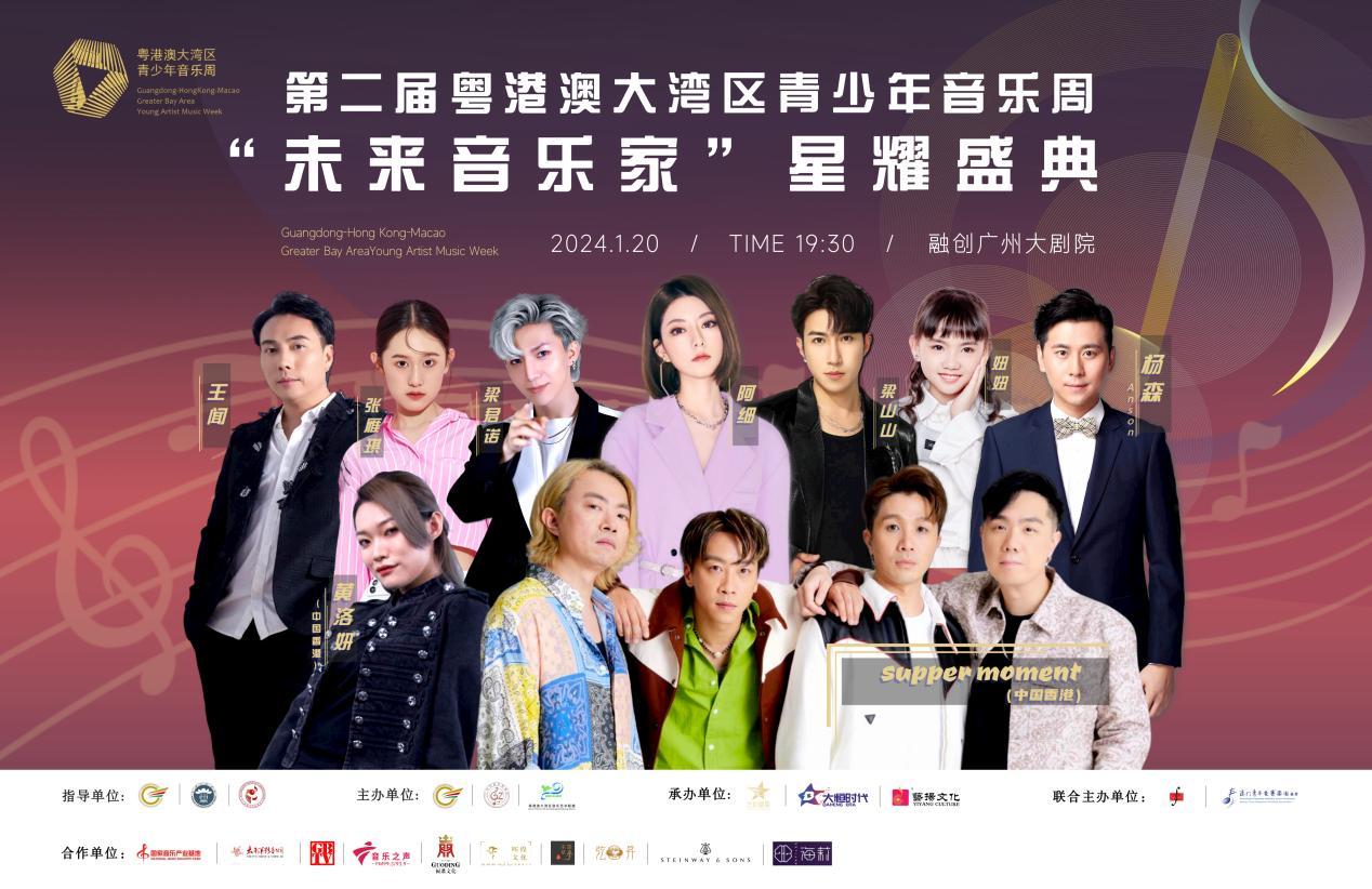 2024年1月20日,星光熠熠的广州融创大剧院迎来了一场盛大的音乐盛典——第二届粤港澳大湾区青少年音乐周“未来音乐家”星耀盛典。本次盛典由广东省粤港澳合作促进会、星海音乐学院、广东省音乐家协会指导,广东省粤港澳合作促进会文化传播委员会、广州市音乐家协会、粤港澳大湾区音乐艺术联盟、香港青年乐团、澳门青年交响乐团协会联合主办,大恒时代国际影视文化传媒、艺如星臣文化传媒、艺扬文化联合承办。