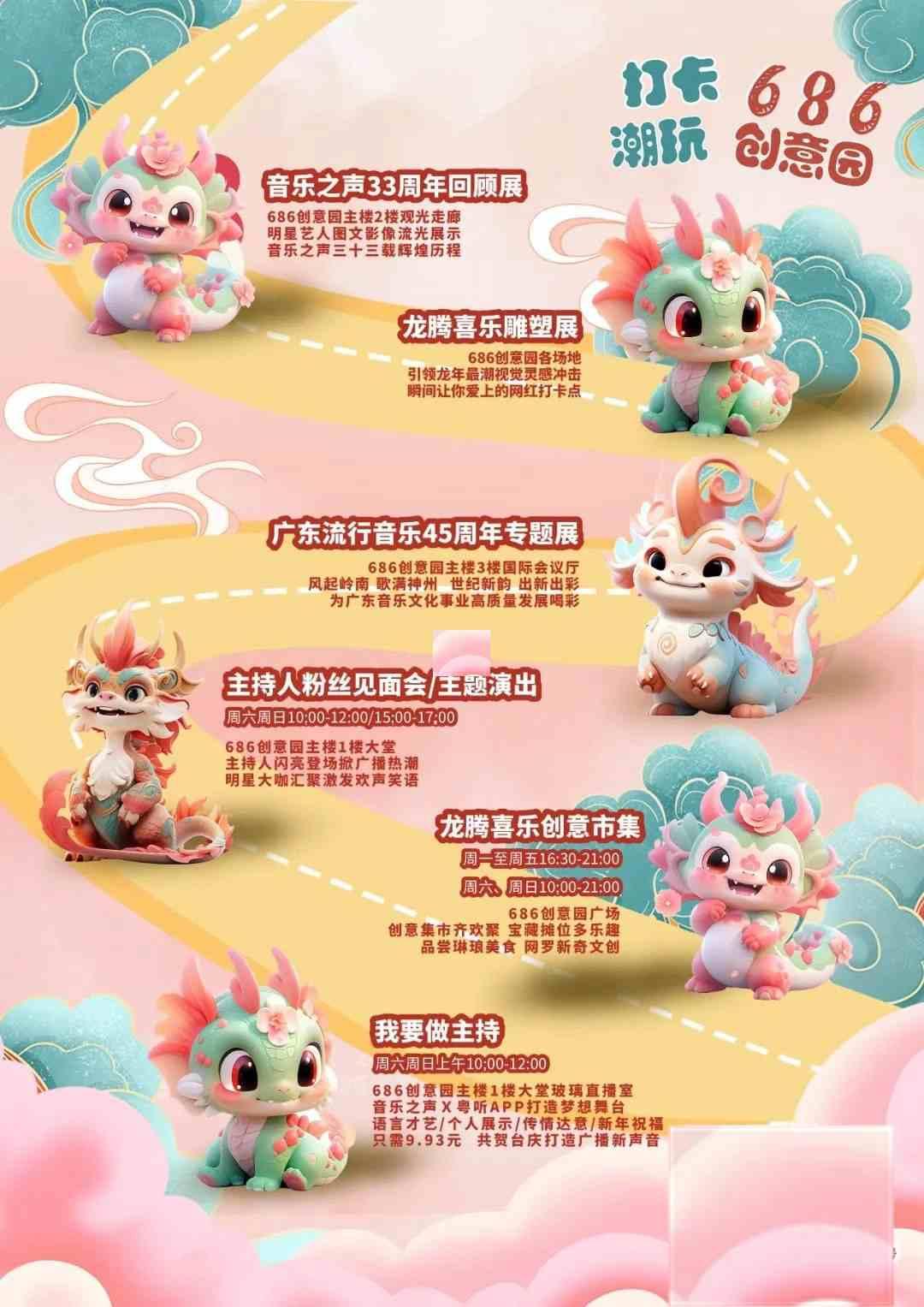 2024年2月4日,广东广播电视台音乐之声33周年台庆嘉年华盛典在广电城投686创意园隆重举行,盛典以“33猛猛,龙腾喜乐”为主题,是广东广播电视台音乐之声迎接新春的重要活动之一。