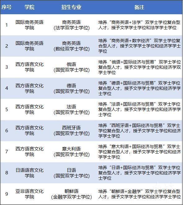 今年,广外首次上线“外语+”双学士学位项目招生,涵盖“西班牙语+国际经济与贸易”“商务英语+法学”“朝鲜语+金融学”等9个具体项目,让学生既具备语言技能,又具备某一领域的专业技能,拓宽就业途径,更适用于时代发展与市场需求。