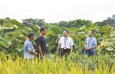 近年来,广州市花都区纪委监委通过提级监督、联合监督,对村巡察,深挖细查农村集体“三资”管理中的腐败问题。图为广州市花都区炭步镇纪委工作人员到该镇文一村文冈芋头种植基地向村社干部和种植户了解土地流转承包租赁和集体“三资”管理情况。