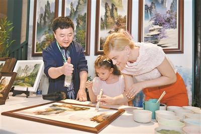 现场,外国友人体验砂石画。图/广州日报全媒体记者杨耀烨