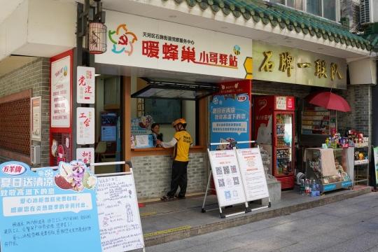 广州市天河区石牌街道绿荷西大街车水马龙,骑手们暖心的“家”——“暖蜂巢·小哥驿站”隐于闹市之中。在这里,骑手们可以纳凉休息,也可以阅读学习,自我增值。如今,“暖蜂巢·小哥驿站”再“上新”法律服务。
