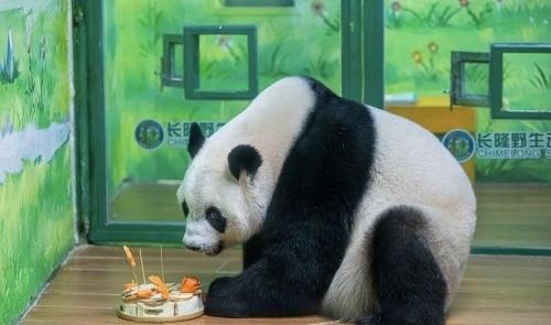 随着特制的生日蛋糕被送到“寿星”面前,大家一起唱响了生日歌。“萌帅酷”在祝福的歌声中开心地开启了现场“吃播”。据保育员介绍,生日蛋糕是由蜂蜜水、水果块、竹笋、胡萝卜和竹子等“高端”食材制作而成,兼顾健康和美味,深受“老广”大熊猫的喜爱。