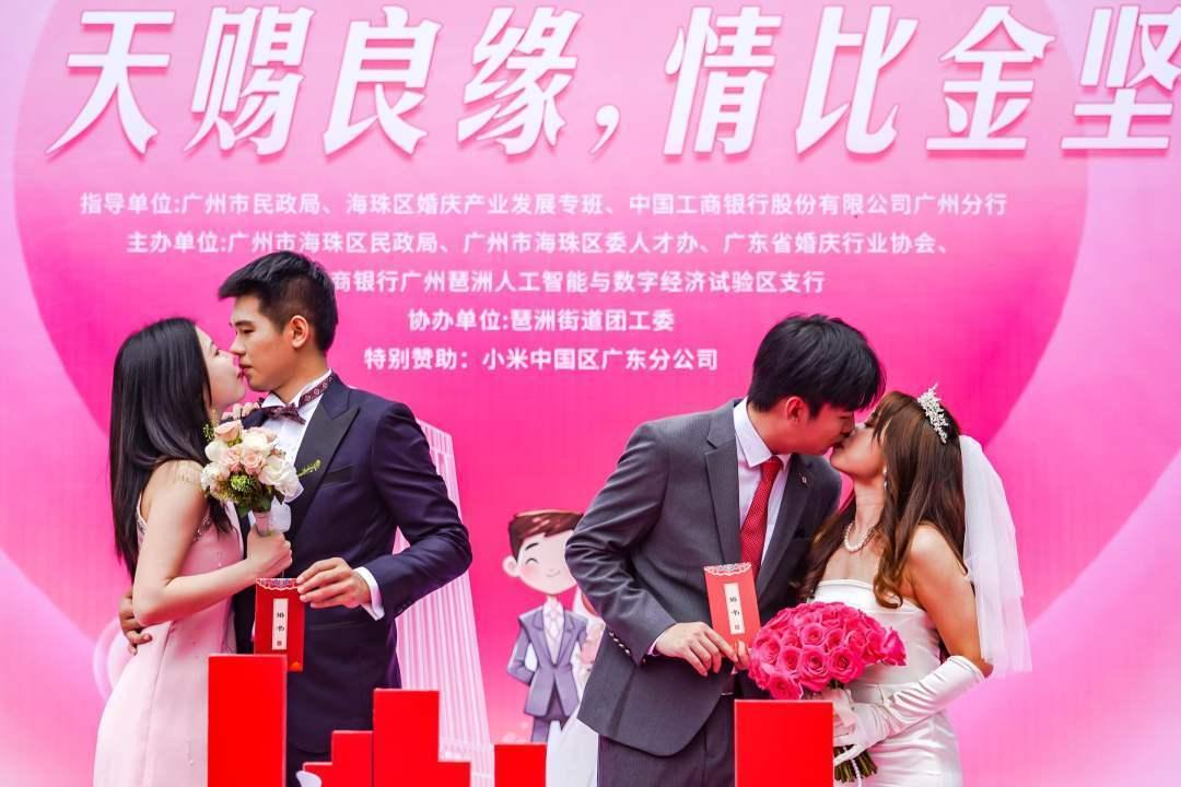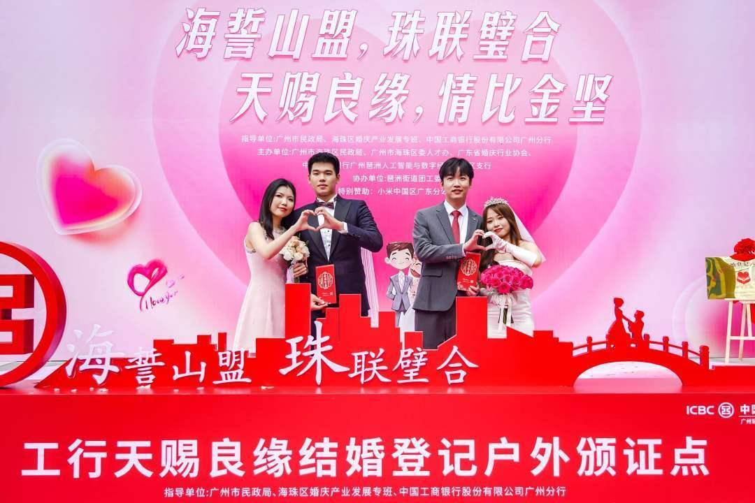 据悉,在广州市民政局、海珠区婚庆产业发展专班指导下,海珠区民政局、海珠区委人才办、广东省婚庆行业协会携手中国工商银行广州分行,在中国工商银行广州琶洲人工智能与数字经济试验区支行揭幕了首家金融机构户外结婚证颁证点。