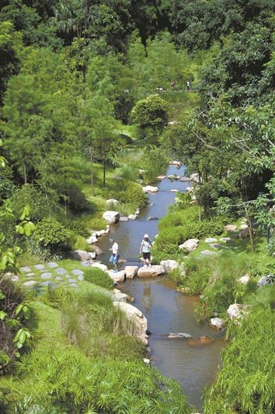 山峦叠翠、溪涧纵横,云溪植物园立足白云山的生态资源禀赋,为各类植物提供了良好的生产保育环境。据介绍,植物园依据植物生长习性,通过地形塑造、植物配置、生态修复等手法,构建了新优花卉展示园、睡莲植物展示园、蜜源植物展示园、珍稀植物展示园、野牡丹展示园5个专类展示园,展示了从热带到亚热带不同气候类型的植物种类,为游客提供了一个全面了解生物多样性的窗口。“植物园位于白云山西麓,园内溪涧潺潺,这是‘云溪’这个名字的由来。”云溪植物园主任吴毓仪向记者介绍。