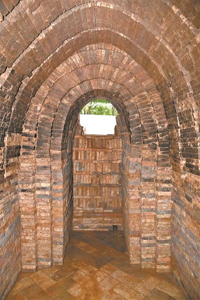 南朝墓规模稍小,为双后室的夫妻合葬墓,结构精巧,除双后室顶部各有一个盗洞外,其他结构保存完整,也尤为难得。程浩介绍,“目前广州市内发现的南朝时期墓葬绝大多数是没有墓顶的,这座墓的难得之处在于,顶部基本保存完好。”他还表示,南朝墓相比东汉墓的墓内装饰更讲究,“墓里可以看到祭台、假柱、假窗等,在双后室共用的墙壁上还有相通的窗棂结构。”