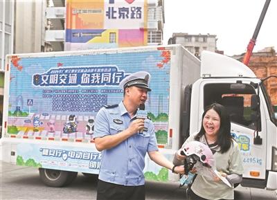 昨日,广州交通安全流动小篷车驶进越秀区北京路,为街坊们带来一场生动有趣的交通安全知识宣讲。广州日报全媒体记者邱伟荣 摄