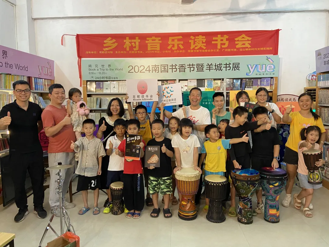 2024羊城书展期间,乡村音乐读书会在南国书香节暨羊城书展在24小时书店分会场举行,特邀非洲鼓培训师刘泳创到场,指导大家欣赏和学习非洲鼓。20多名读者参加了读书会活动,一起阅读好书,学习非洲鼓,感受书香和音乐的美好。