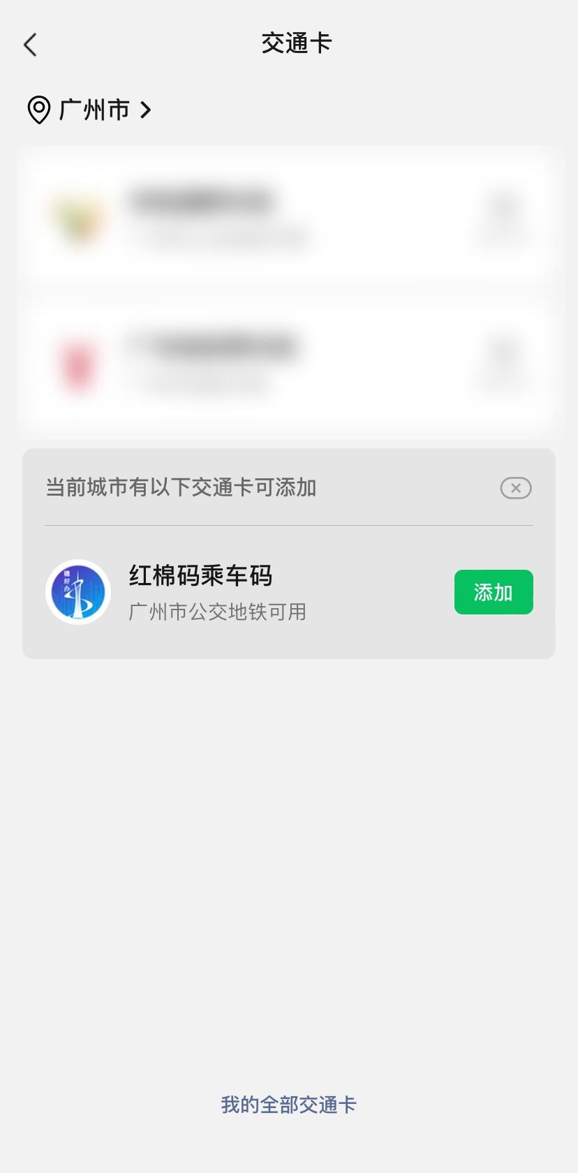 打开微信,点击“我”-“卡包”-“交通卡”,点击添加“红棉码乘车码”,根据指引操作即可出示穗好办·红棉码。