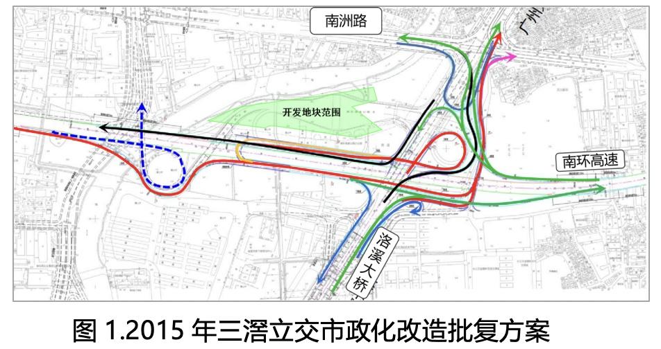 因东南西环高速公路取消收费,2013年起,三滘立交市政化改造前期工作启动。海珠湾隧道工程于2020年立项,由广州交投集团负责实施该工程建设任务,2015年批复的原东南西环高速公路三滘立交市政化改造工程(包括连接东晓南放射线延长线的预留匝道)方案须同步进行方案调整。