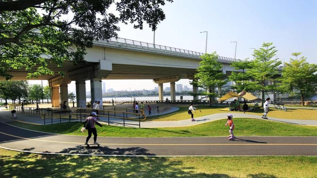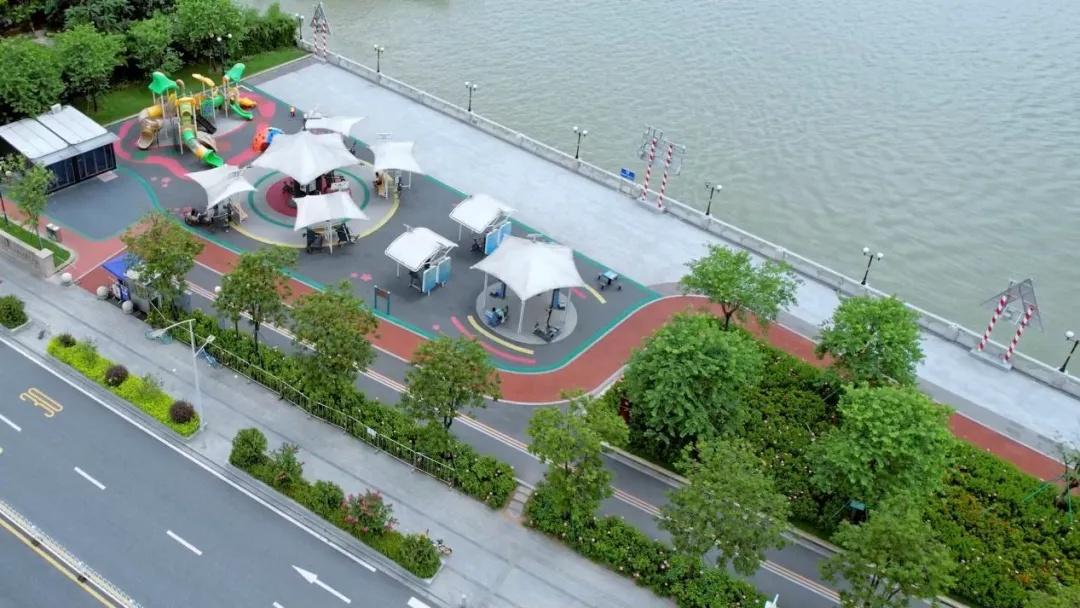 此外,阅江路口袋公园结合万里碧道建设全面贯通珠江前航道滨水景观带,实施骑行道、慢跑道、漫步道等“五道并行”,建设跨涌桥打通断点路,增加新时代驿站、下沉文化广场、儿童游乐设施以及极限运动场,持续扩大公益性、基础性全民健身服务供给,提升群众的获得感和幸福感。