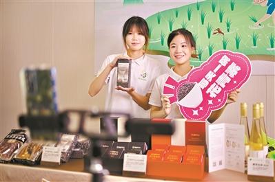蜜蜂学员在实训中尝试直播售卖黑米等农产品。 广州日报全媒体记者张姝泓 通讯员穗团宣、郑梓东 摄