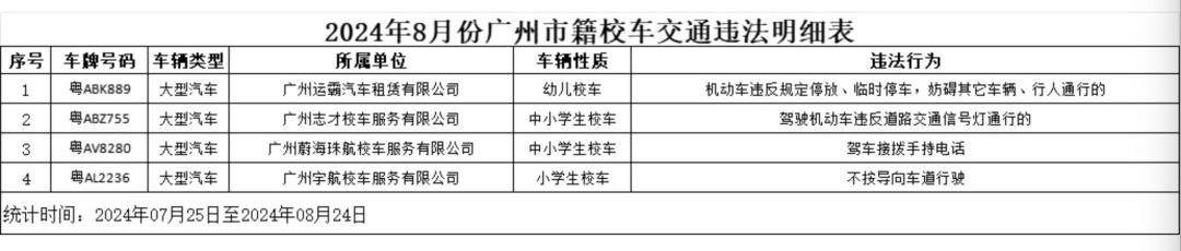 广州市籍校车交通违法明细表(2024年8月)